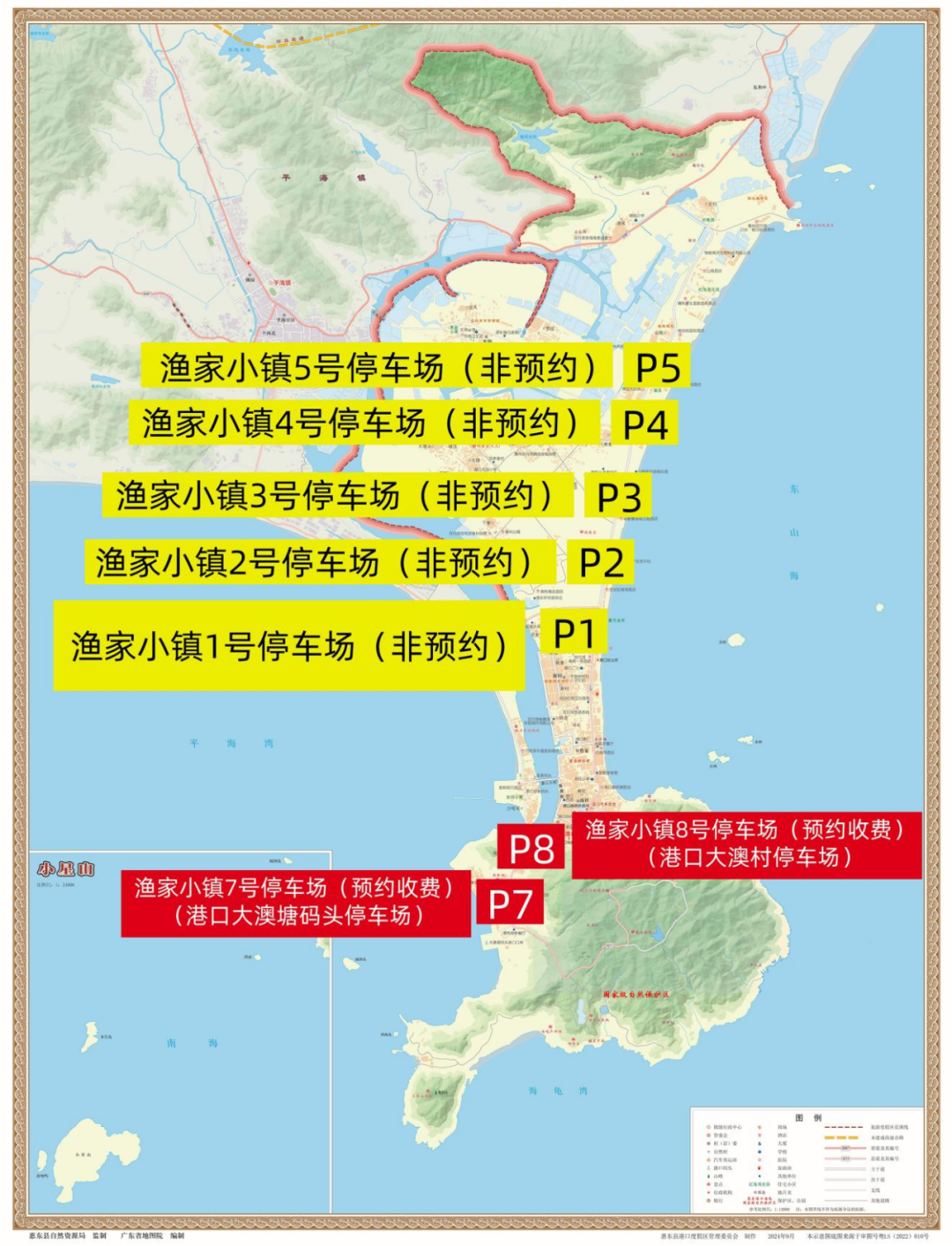 (二)预约停车服务。实施优化交通管理期间,进入优化管理区域的7座及以下机动车,通过“惠州海龟湾”订阅号预约2个收费停车场,分别为渔家小镇7号和8号停车场。